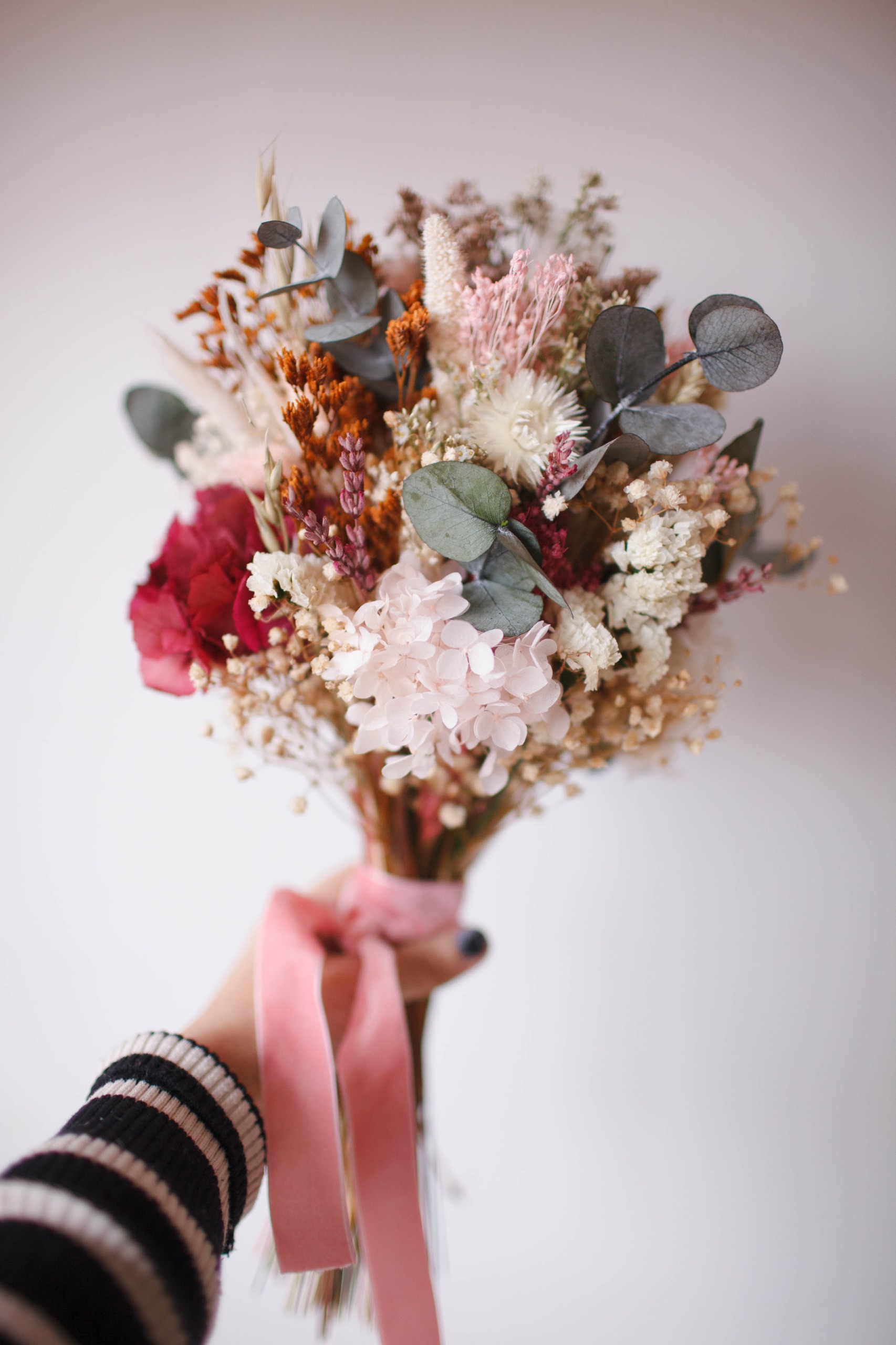 El ramo está elaborado de manera artesanal con flores naturales preservadas, seleccionadas por su armonía, suavidad y belleza atemporal. Una composición pensada para durar, sin necesidad de agua ni mantenimiento, y convertirse en un recuerdo que acompaña mucho más allá del momento en que se regala.