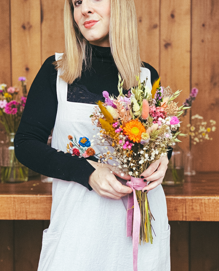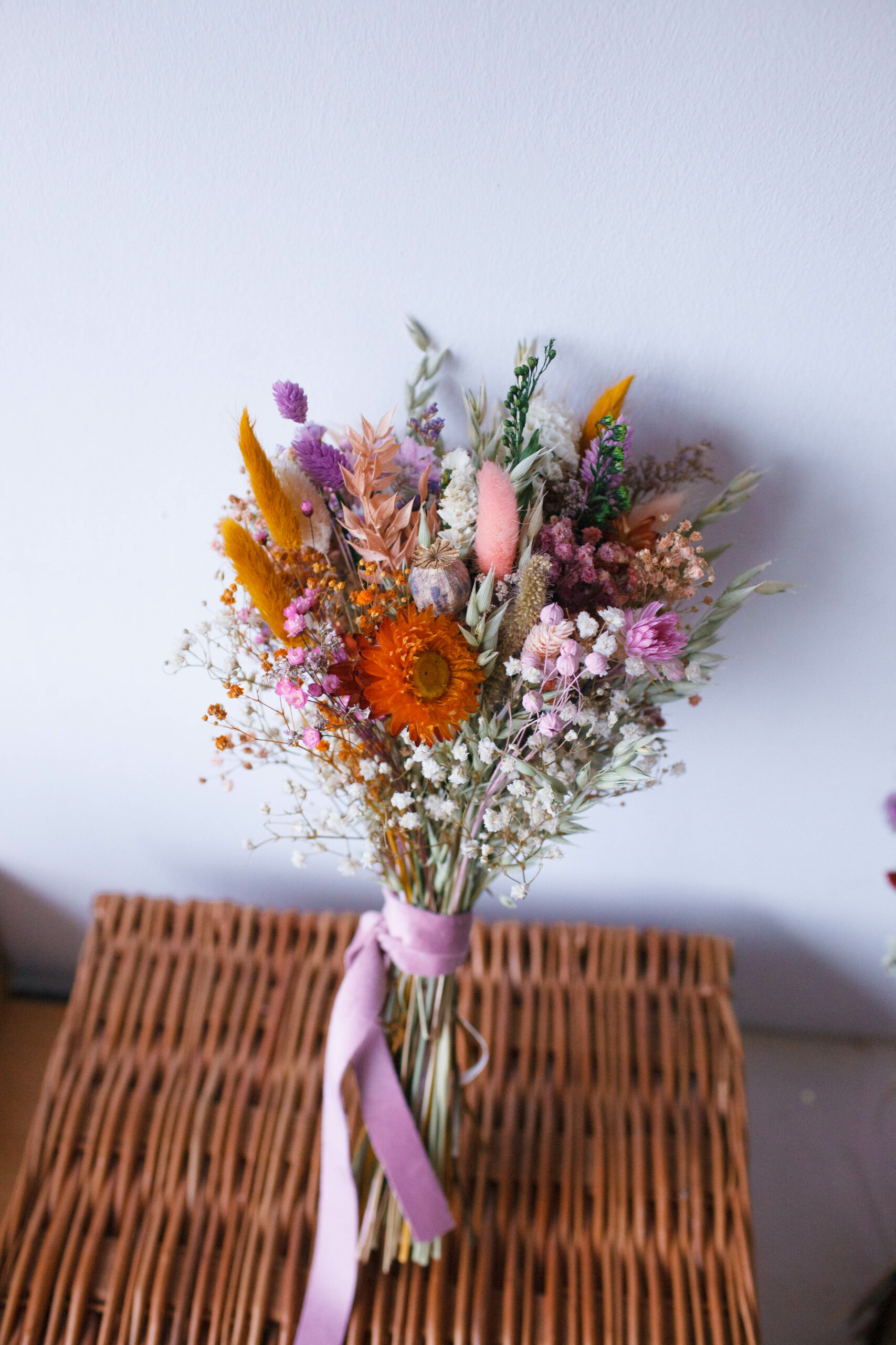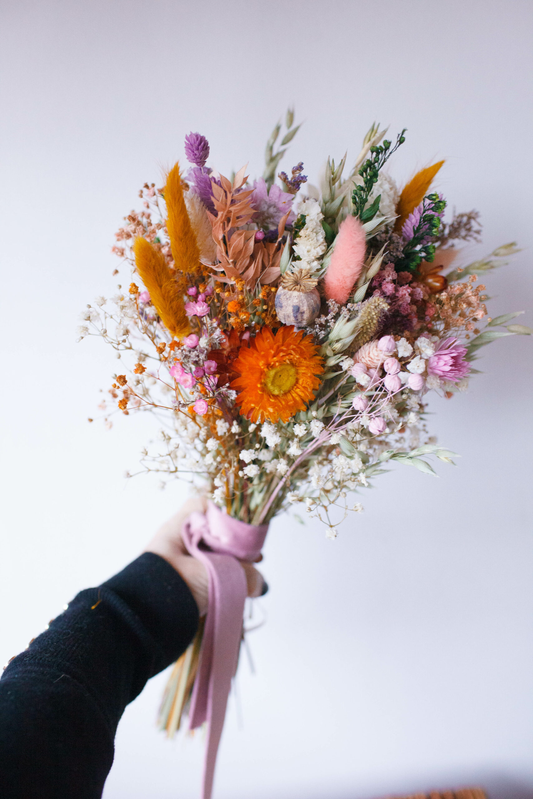 Ramo de novia preservado de diseño compacto y silvestre (20 cm x 35 cm) – Colección Flores de Diseño