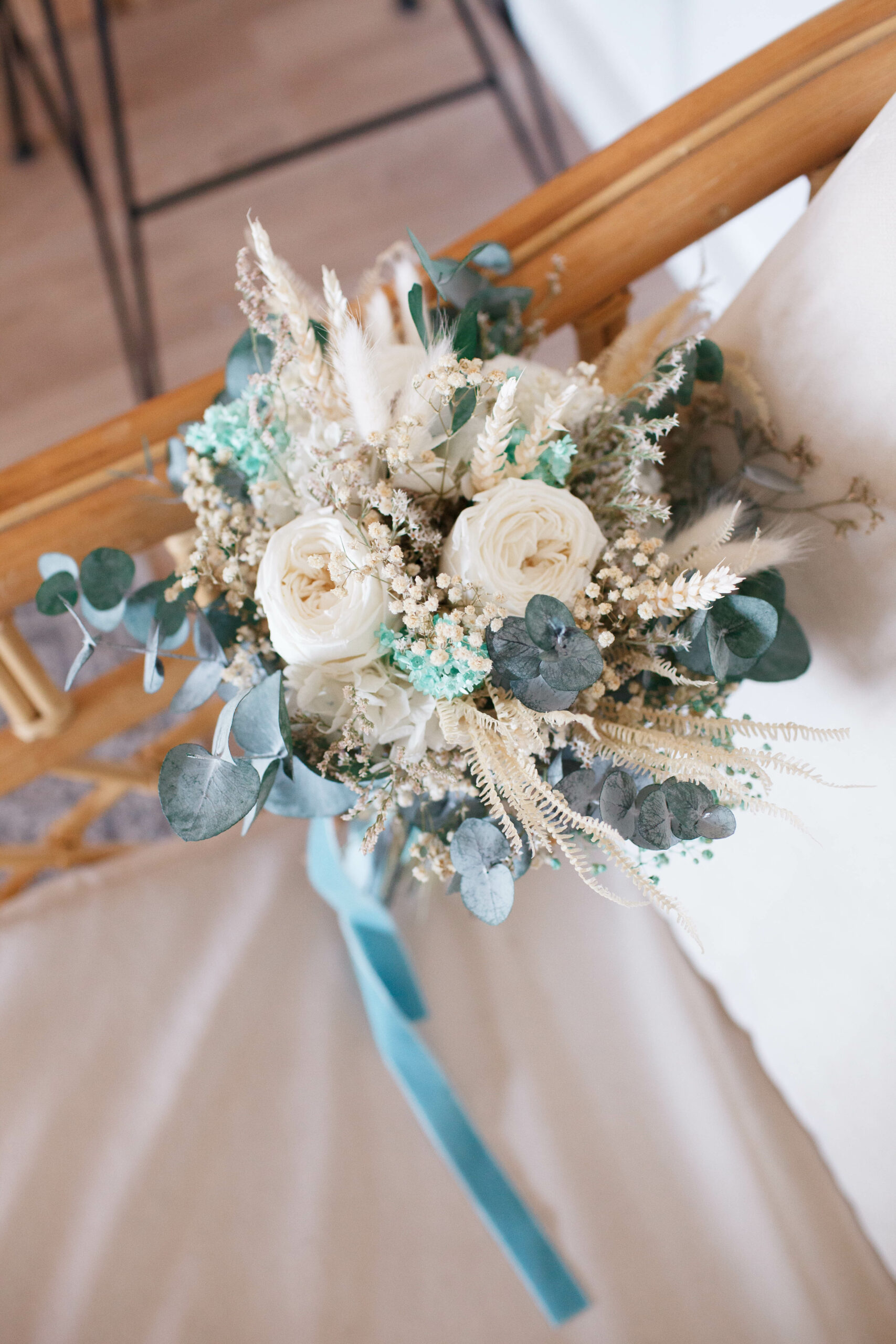 Ramo preservado en tonos blanco, verde agua y marfil – Colección Flores de Diseño