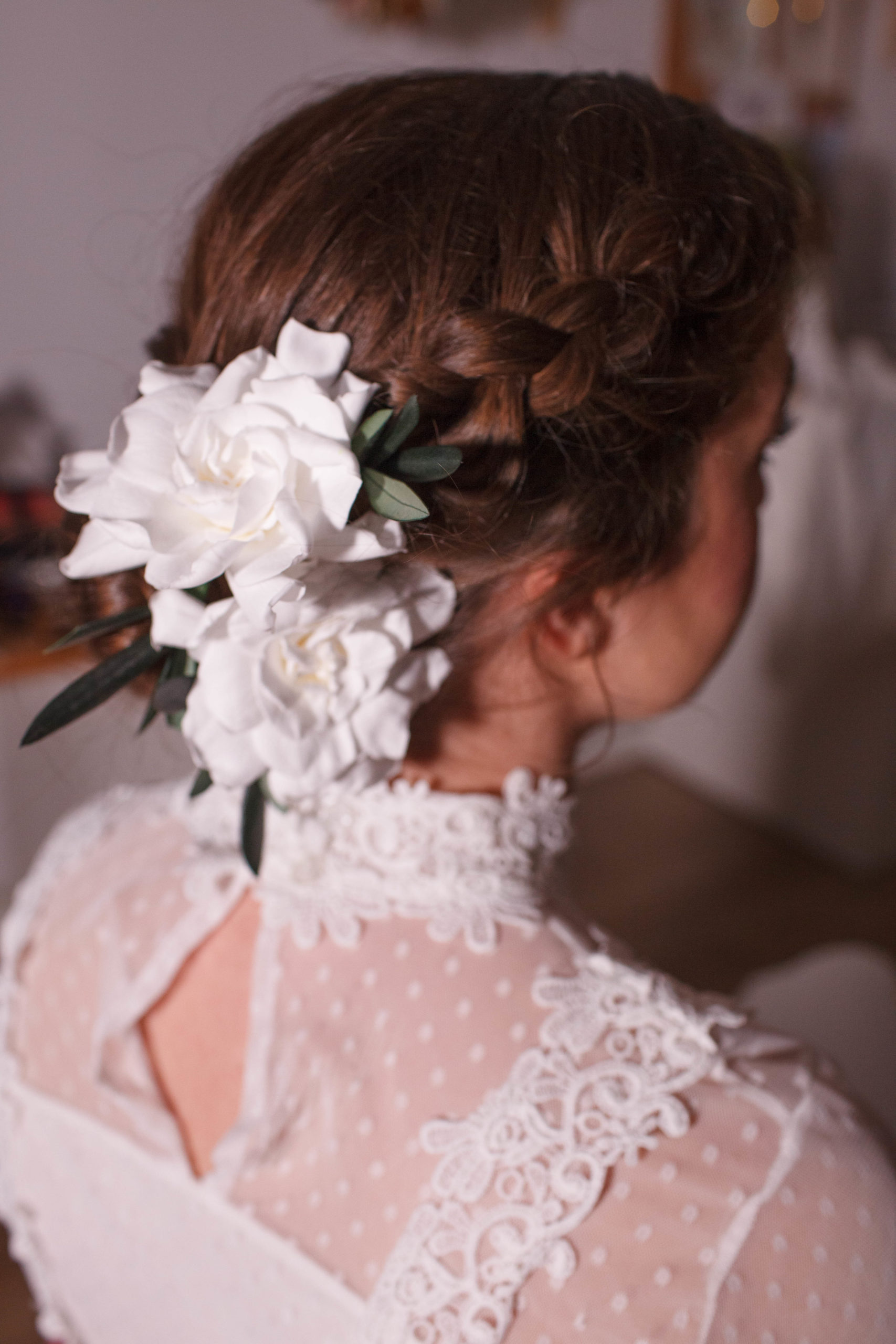 Como parte de la colección Flores de Diseño, este tocado utiliza técnicas de preservación de alta calidad para que las gardenias conserven su delicada apariencia de flor recién cortada durante todo el evento y se conviertan en un recuerdo eterno después del «sí, quiero».