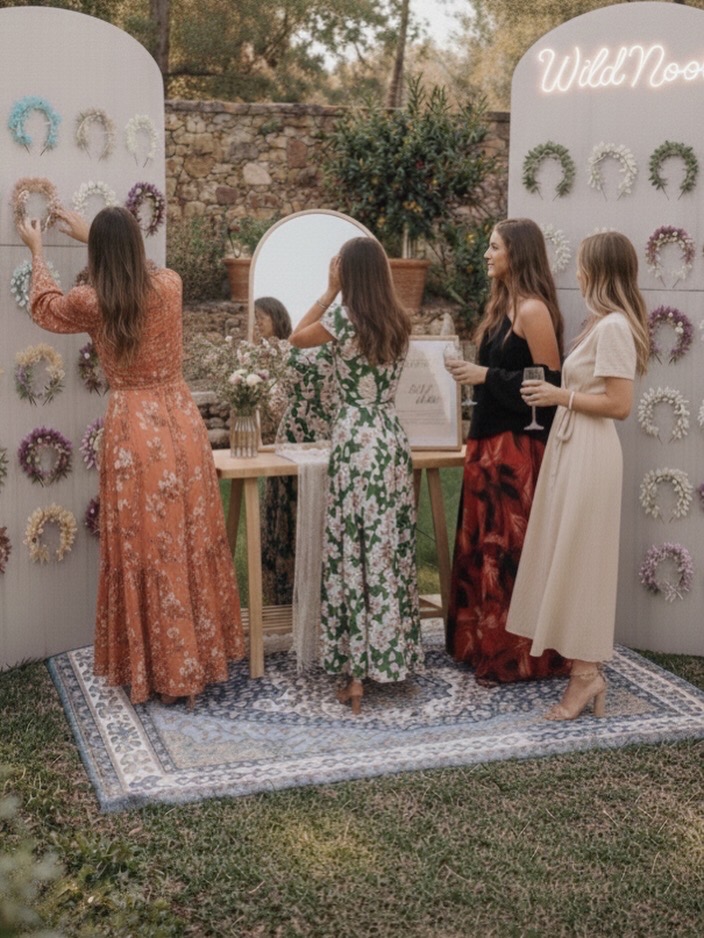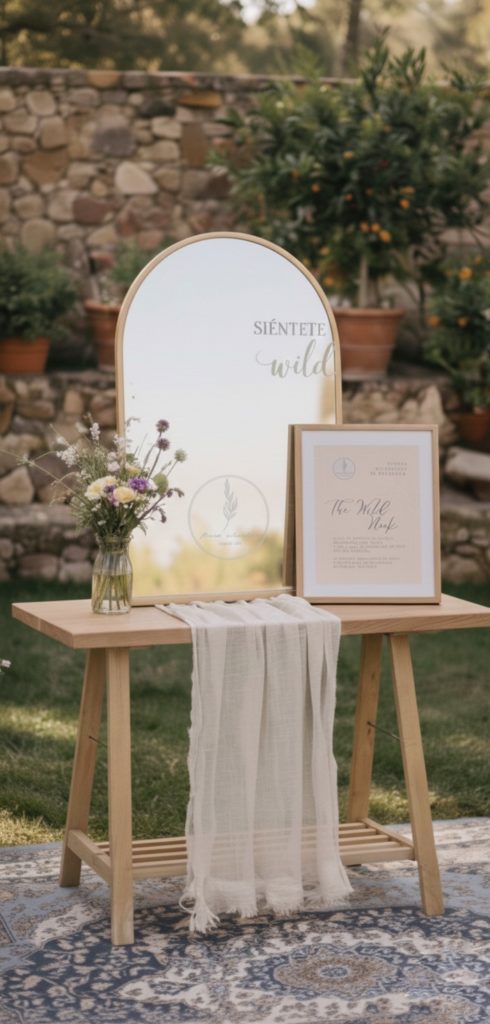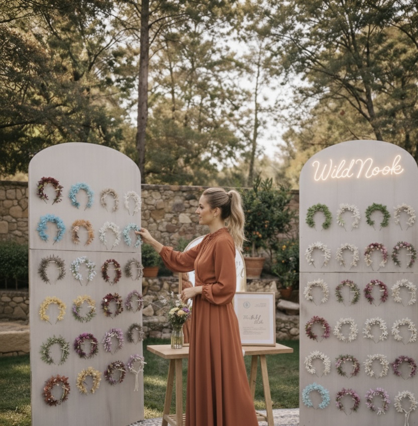 ✨ WILD NOOK · EXPERIENCIA PARA BODAS Wild Nook es una experiencia exclusiva dentro de la boda, un rincón especial donde las invitadas viven un momento único: elegir su propia diadema de flores preservadas y llevarse un recuerdo que permanece en el tiempo. No es solo un detalle bonito, es un pequeño ritual que emociona, sorprende y convierte un gesto en algo memorable. Wild Nook está pensado para bodas que cuidan los detalles y quieren ofrecer algo diferente y especial a sus invitadas. 🌿 OPCIONES WILD NOOK -Wild Nook ESSENCE (Ideal para bodas íntimas o novias de fuera de Sevilla) Hasta 40 diademas de flores preservadas Experiencia centrada en la elección de la diadema No incluye mobiliario Una opción perfecta para disfrutar de la esencia de Wild Nook: la experiencia de elegir un recuerdo único. -Wild Nook SIGNATURE (La experiencia completa Wild Nook) A partir de 40 diademas de flores preservadas Incluye el préstamo del mobiliario completo para crear el rincón Wild Nook El mobiliario incluido está diseñado para crear un espacio especial y visualmente cuidado: -Espejo con el mensaje “Siéntete Wild” -Mesa desmontable de madera con cesta de picnic para las diademas -Dos pegboards plegables para colocar diademas con el neón Wild Nook -Marco con las instrucciones -Dos cestas con eucalipto -Alfombra vintage Todo el mobiliario está pensado para plegarse y transportarse fácilmente. Además, se envía una imagen de referencia con el montaje, para que el rincón pueda montarse de forma sencilla y rápida. Wild Nook es para parejas que quieren algo más que un regalo. Es para quienes desean que sus invitadas vivan una experiencia y se lleven un recuerdo inolvidable.